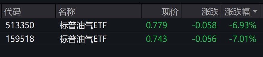 周四美国原油大幅收跌。受盘面影响,标普油气ETF跌约7%。